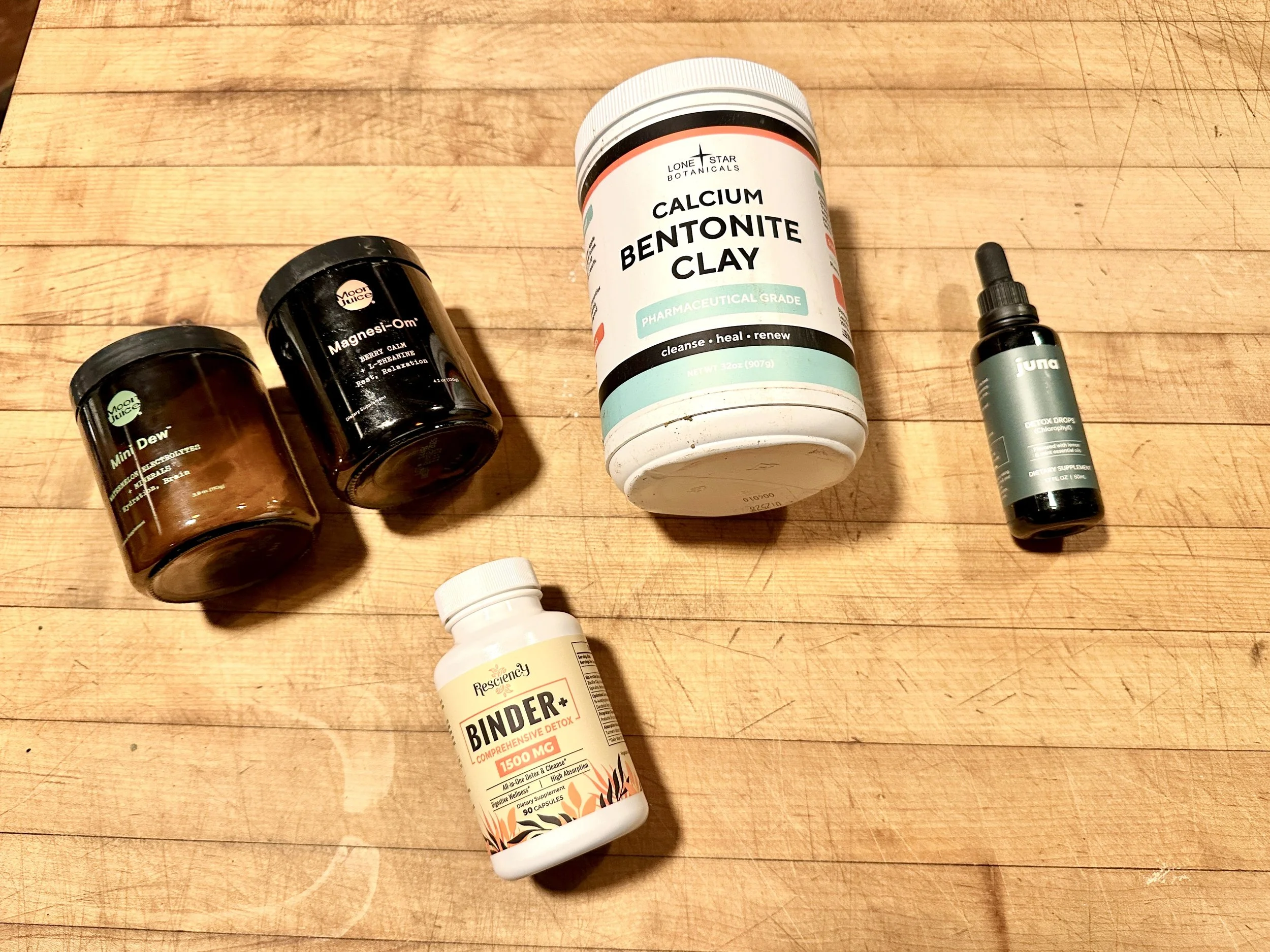 Preparation: Before starting our routine, we take binders like calcium bentonite clay to help latch onto impurities, making them easier to eliminate. We also mix in electrolytes to replenish essential minerals that might be lost during the process.